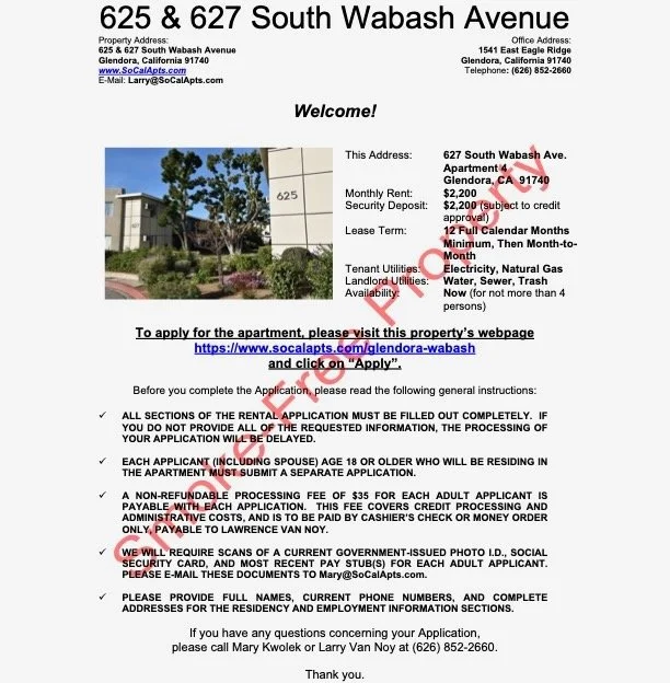 627 South Wabash Avenue, #4, Glendora Downstairs 2 Bedroom, 1 Bath $2,200